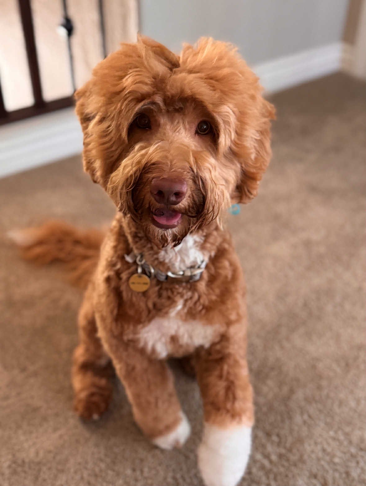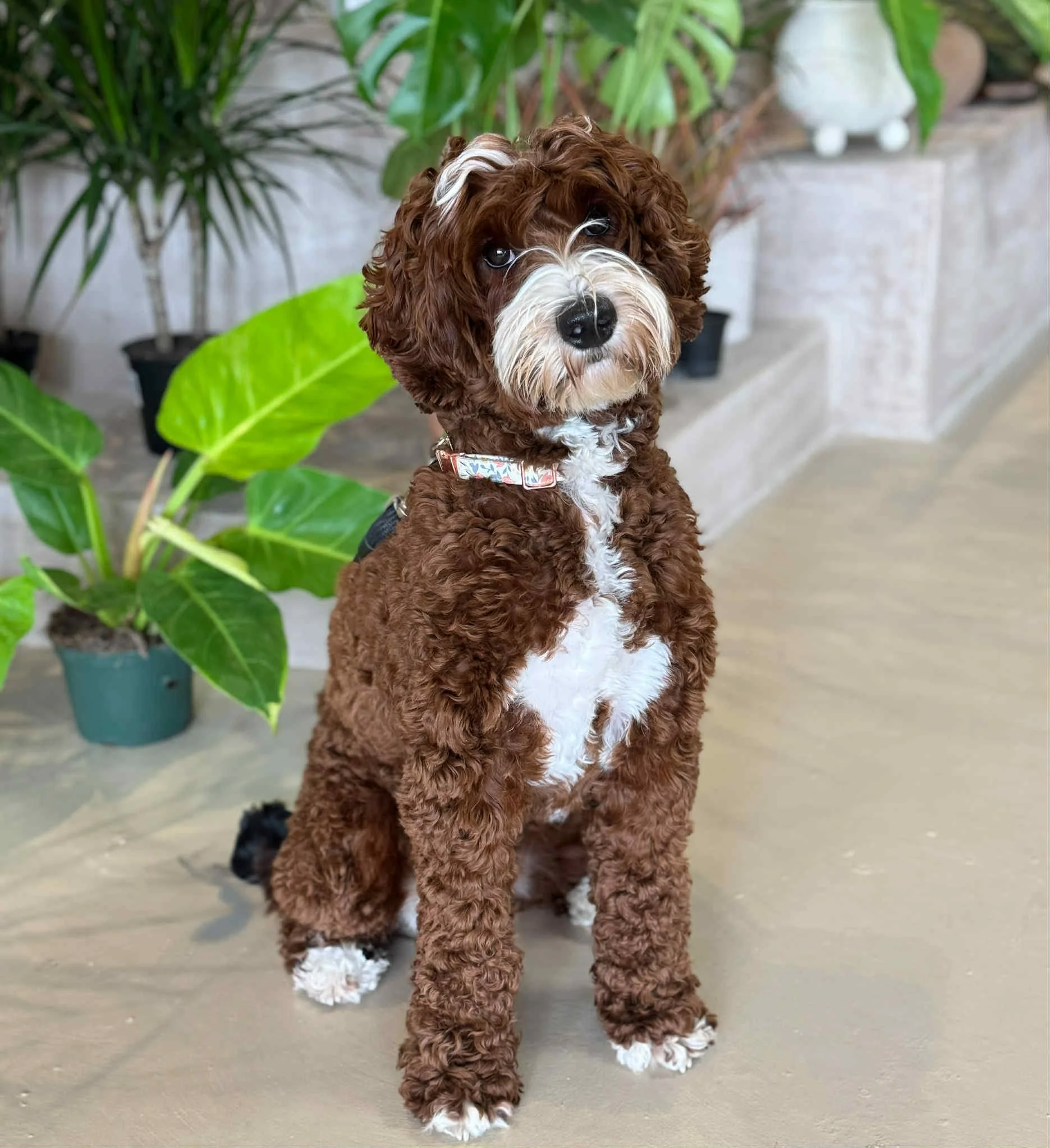 Freddy is our gorgeous red boy who is a complete love. He produces some of the best puppies for us. Freddy is a great large medium size at 45 pounds. To say his guardian family adores him is an understatement! He is a dapper guy who loves his daily walks and playing with the neighborhood doggie friends.