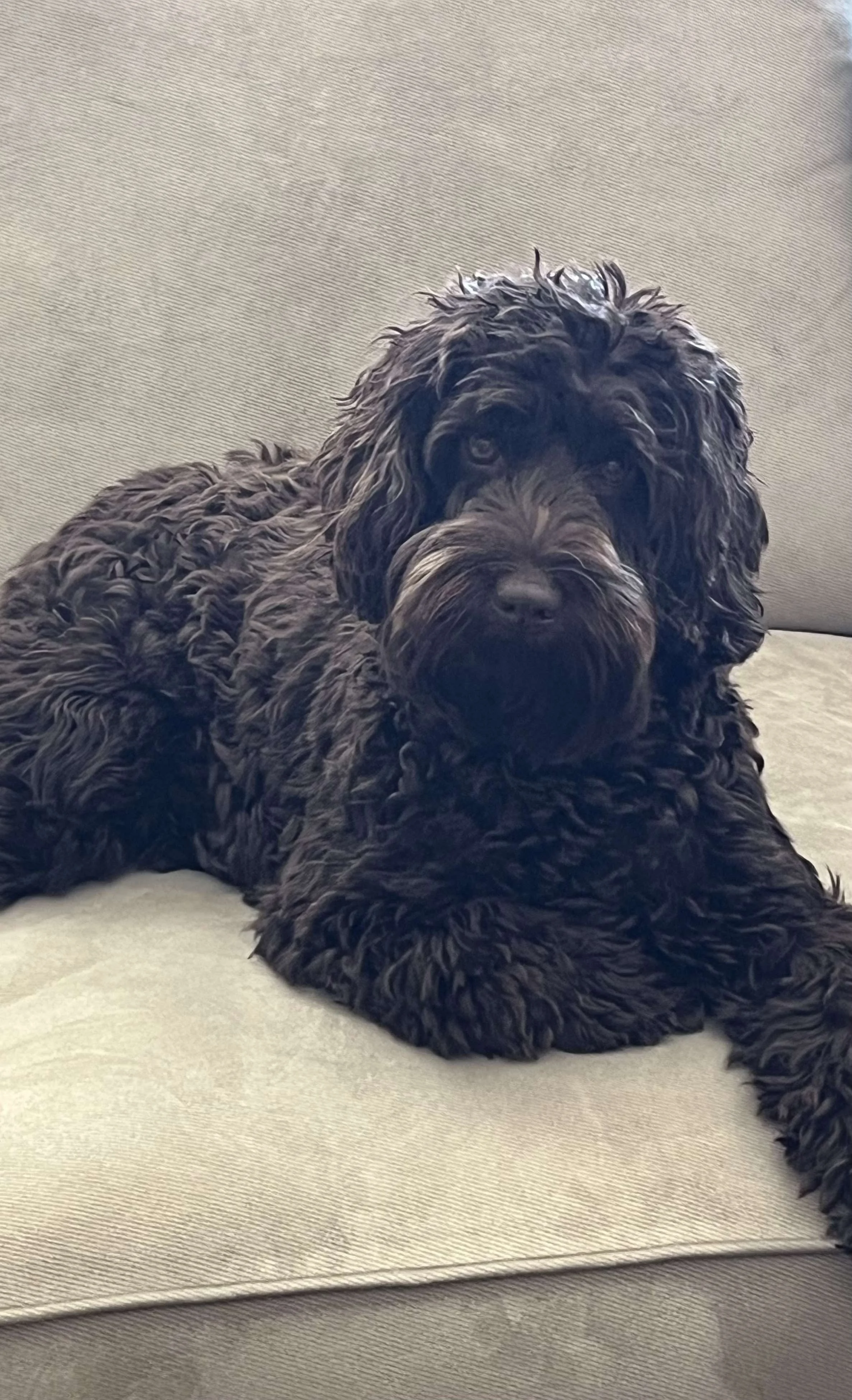 Oscar is our gorgeous chocolate standard boy weighing in at 57 pounds. Oscar just melts into you for snuggles when you stop to say hello to him. He has the most gorgeous light eyes that truly look straight into your soul. He is a gentle giant boy. He is the star of the neighborhood on his daily walks. You can’t help but stare as this gorgeous boy struts.
