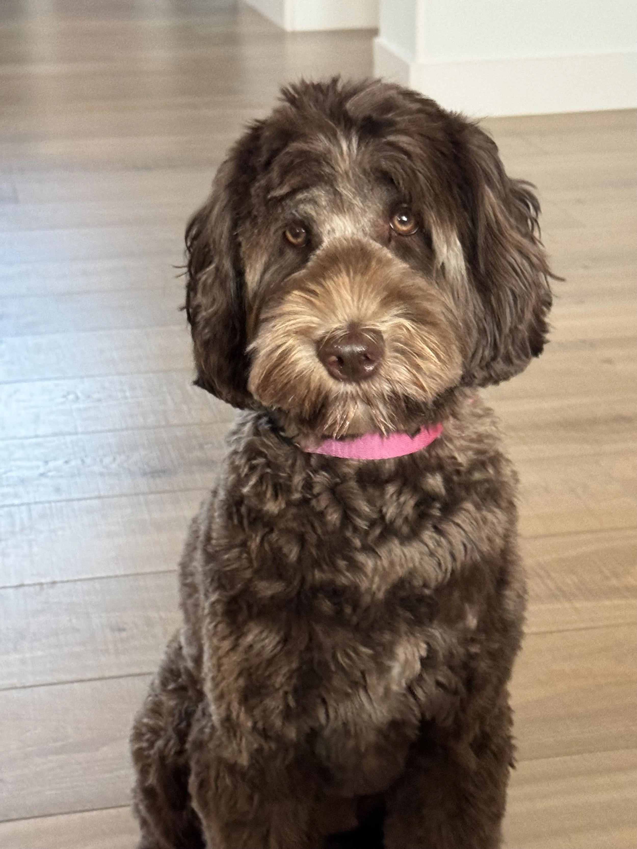 Molly is a very special girl that is the quintessential Australian Labradoodle. She’s a total sweet heart and has the best outgoing temperament. She is a beautiful chocolate girl that is a real show stopper. Molly is a wonderful medium size at 38 pounds. Her last litter was gorgeous and produced some working service dogs.